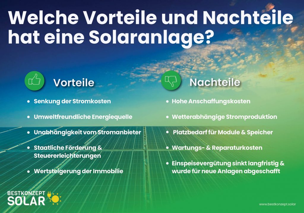 | Vorteile einer Solaranlage | Nachteile einer Solaranlage |